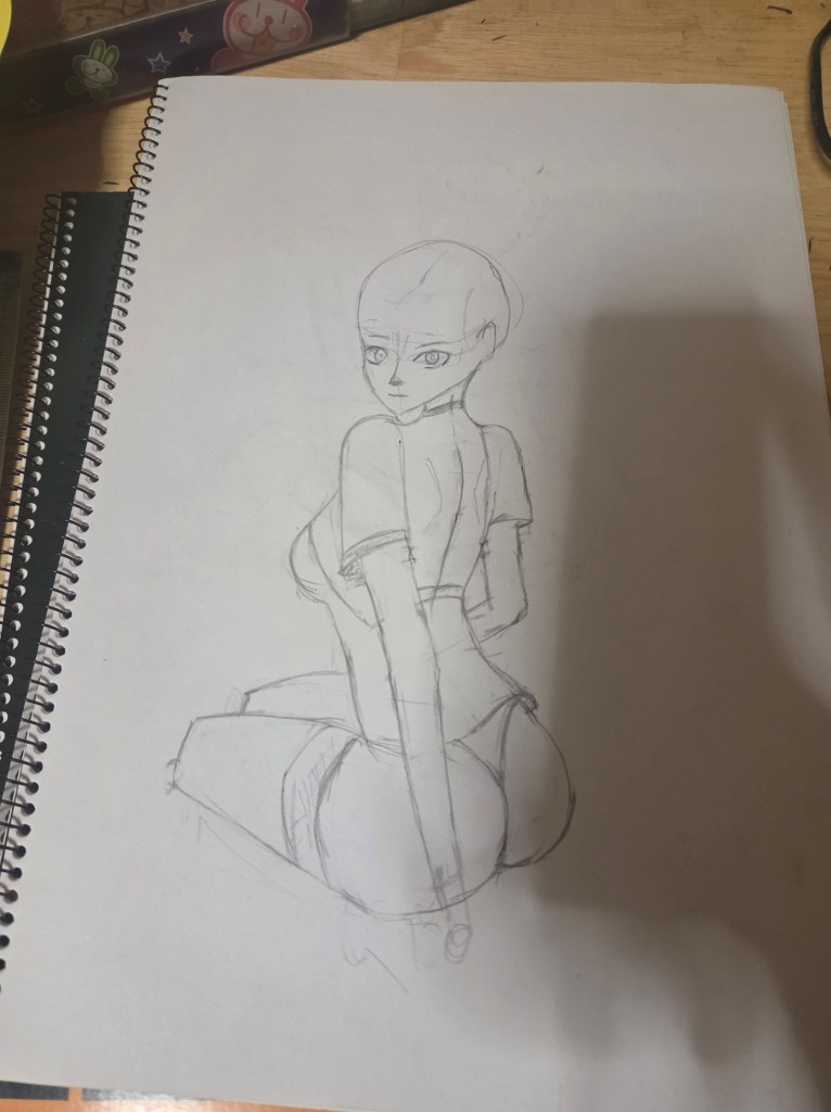 Hasil sketsa pertama masih tanpa detail rambut shading dan baju