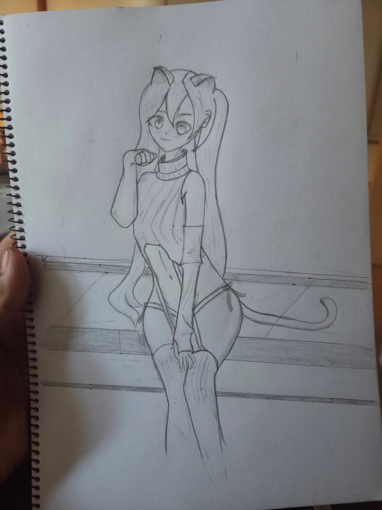 di gambar bawah ini masih kurang shading dan detil wajah dan detil kecil lainnya seperti detil jari , detil rambut ngerapihin garis