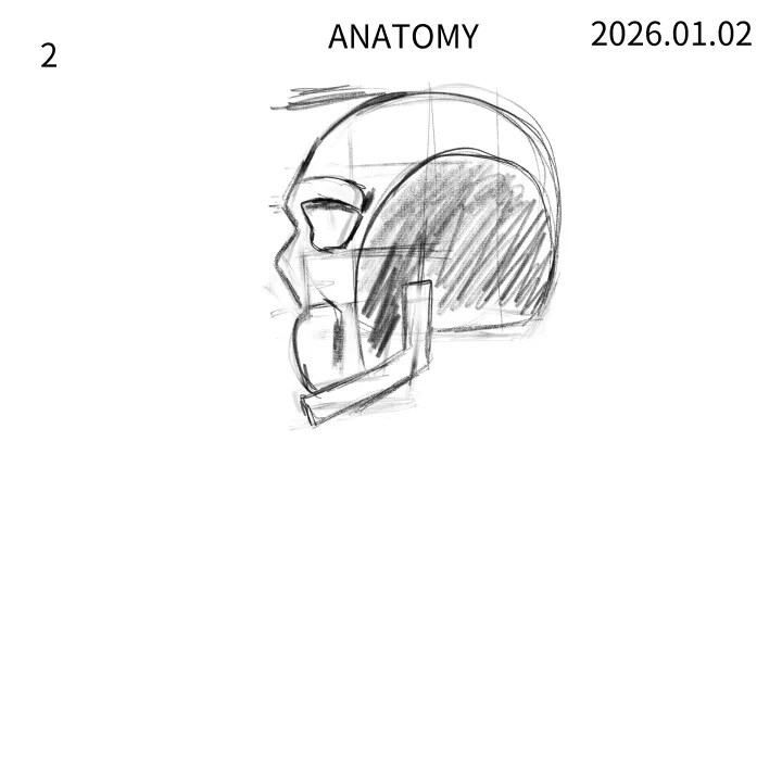 untuk hari ini saya belajar anatomy dari bagian tubuh tengkorak, tapi saya mengambil referensi bentuknya dari buku Burne Hogarth.